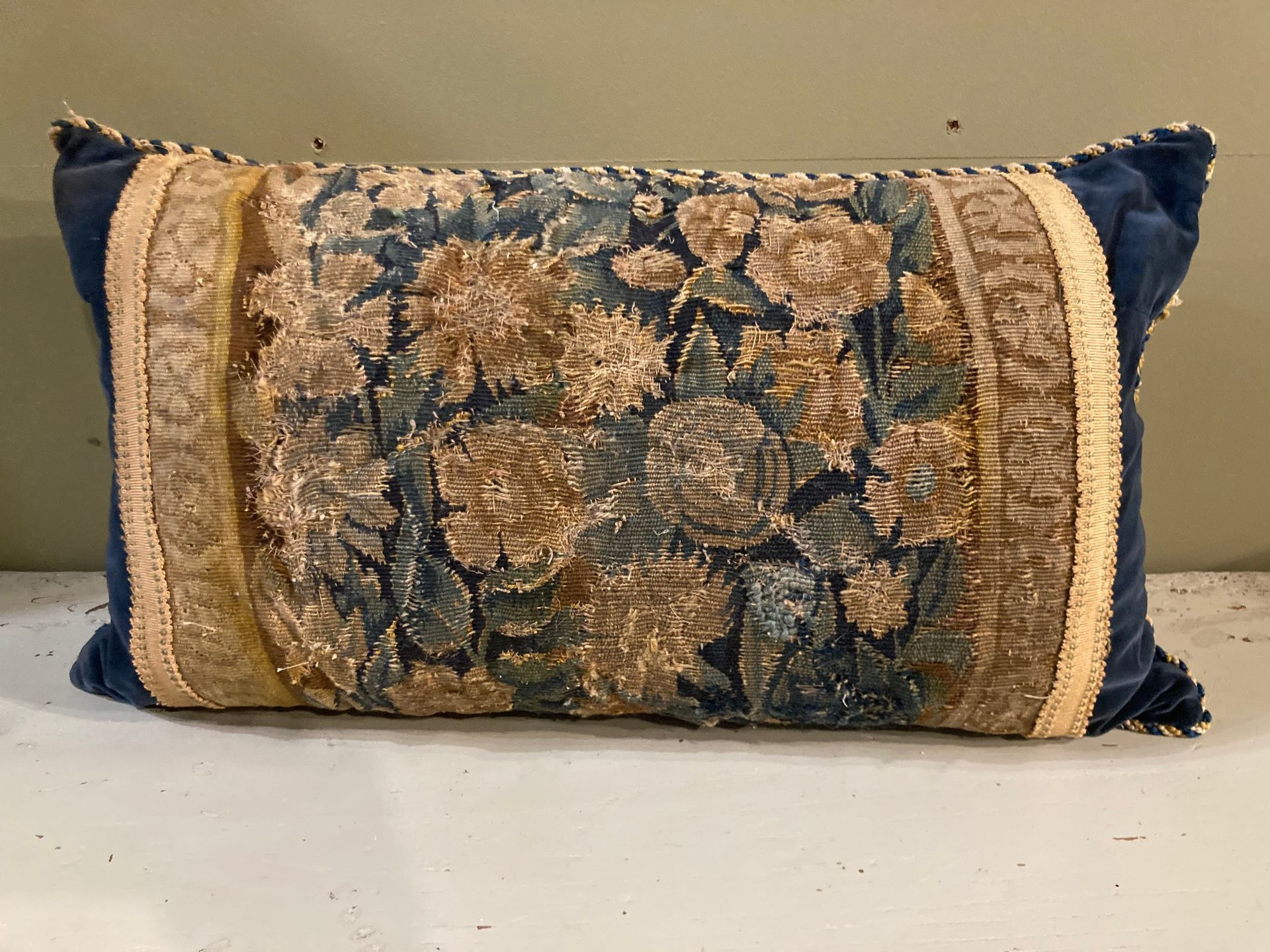 cushion made from a late 17th early c18th verdure tapestry fragment