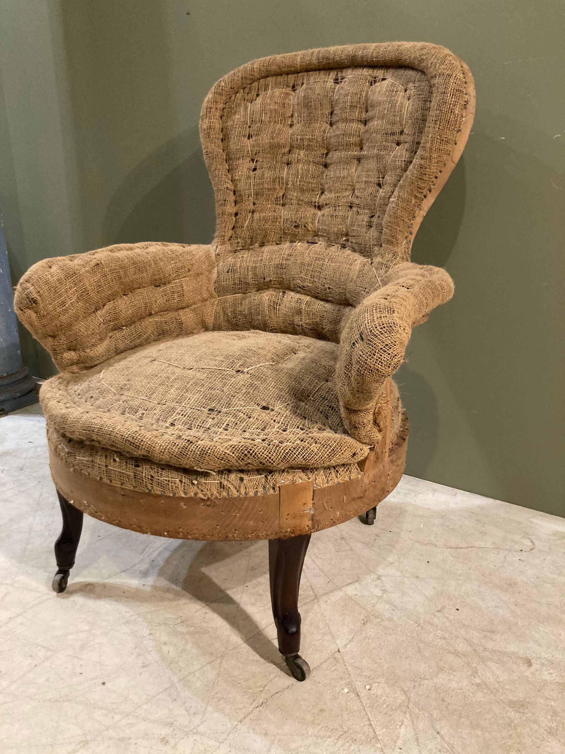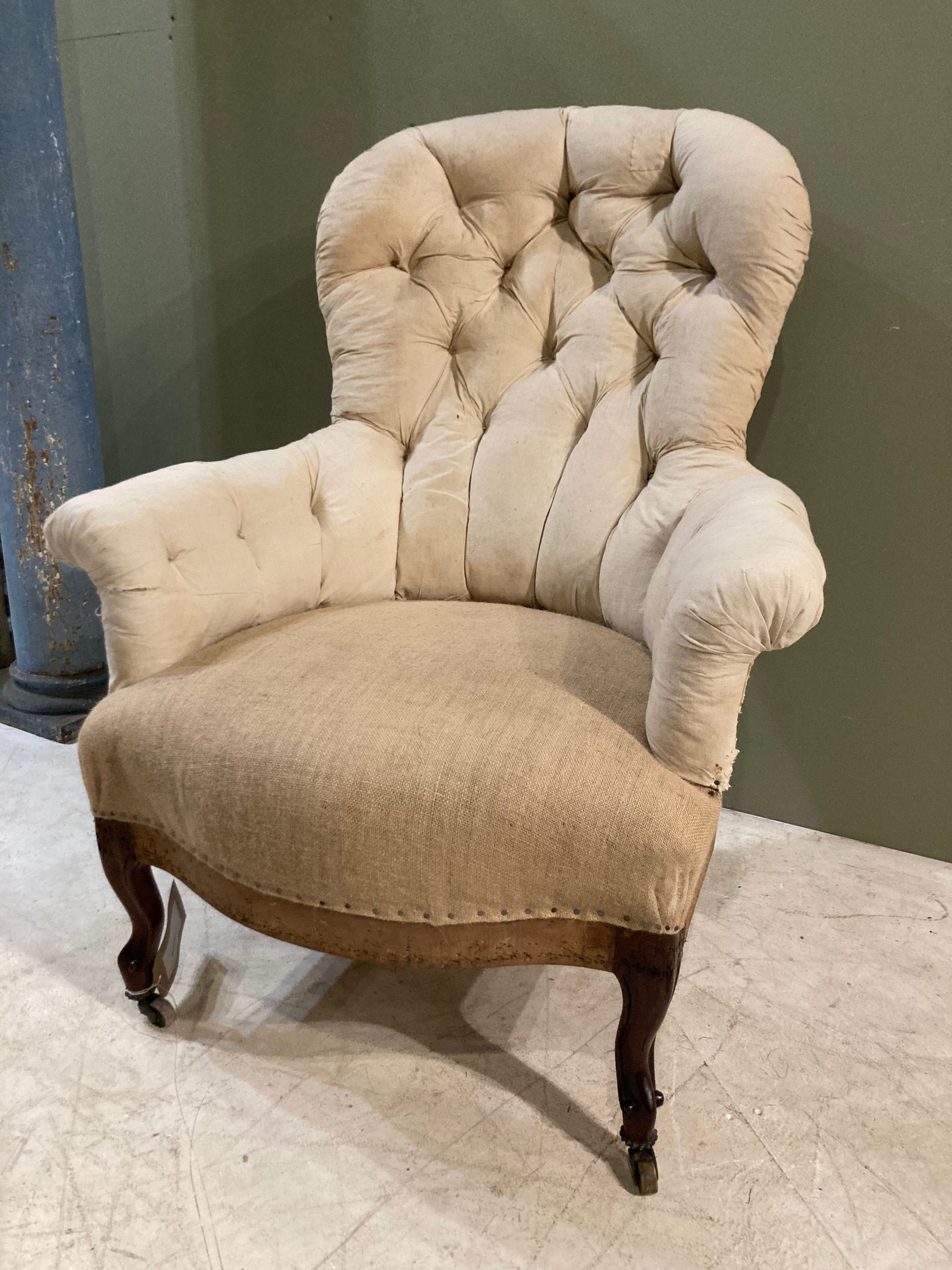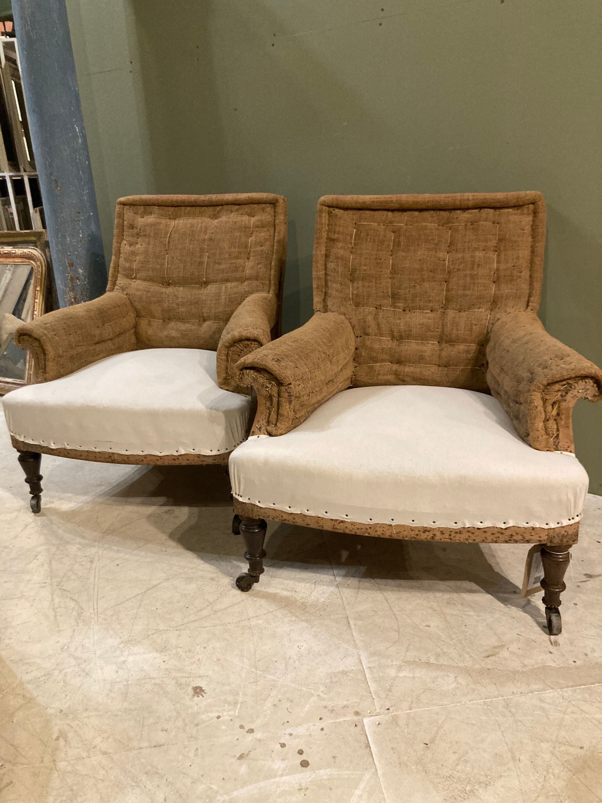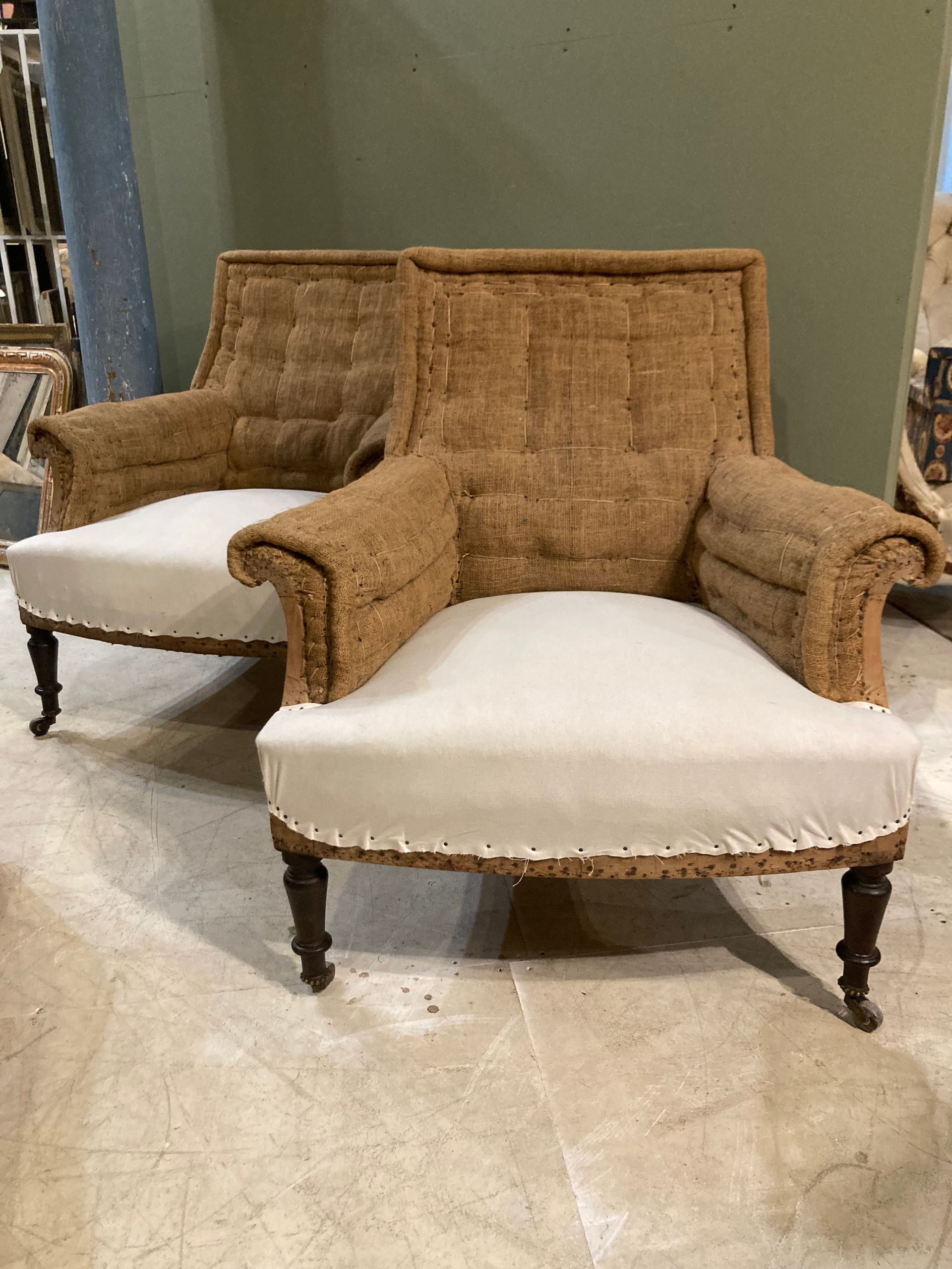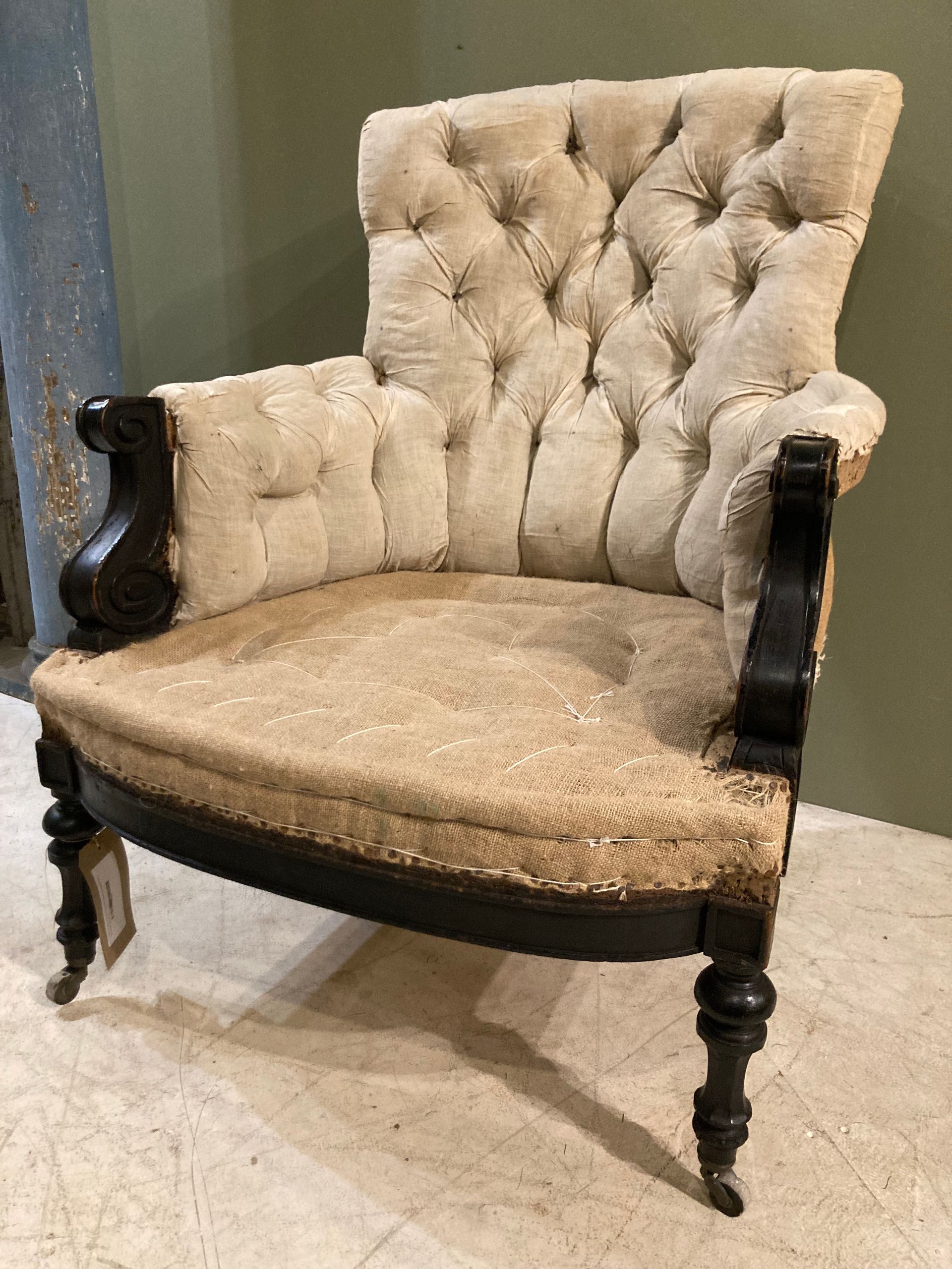 pair of c19th buttoned side chairs with original c19th black silk upholstery